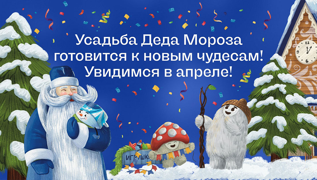 Впервые в истории усадьбы Дед Мороз не уходит на летний отдых, а открывает Министерство сказочных дел и приглашает детей и взрослых на яркие летние интерактивные программы с Бабой-Ягой и обзорные экскурсии в теремах, мастер-классы с Василисой Премудрой и мероприятия на Изумрудной площади усадьбы.