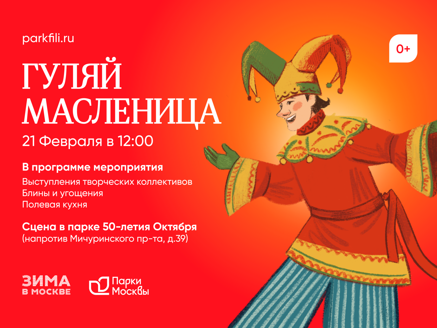 Где: Сцена Раменки в парке 50-летия Октября (напротив дома 39 по Мичуринскому проспекту).