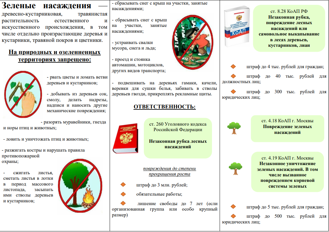 Памятка об охране зеленых насаждений