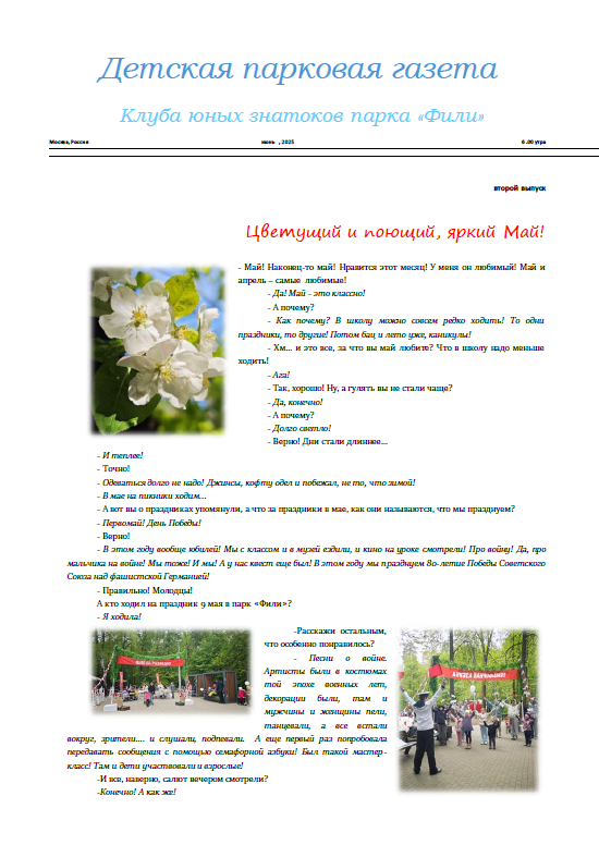 Новый выпуск детской газеты Клуба юных знатоков парка «Фили»